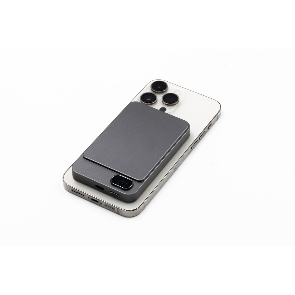Die Powerbank Slim 5000 mAh ist der ideale Imageträger für Ihre Marke. Mit ihrem eleganten Design aus recyceltem Aluminium und der kompakten Größe von nur 6,3 x 10 x 1,4 cm passt sie mühelos in jede Tasche und sorgt dafür, dass Ihre Marke überall sichtbar ist. Dank der 15W magnetischen Wireless-Charging-Funktion (kompatibel mit MagSafe, Qi1 & Qi2) genießen Ihre Kunden nicht nur höchstmöglichen Komfort, sondern auch eine vereinfachte Nutzung im Alltag.