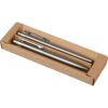 Steigern Sie die Präsenz Ihrer Marke mit unserem hochwertigen Schreibset, das einen exquisiten Kugelschreiber und einen eleganten Rollerball-Stift verbindet. Mit einem schlanken Design aus recyceltem Stahl und robustem Kunststoff, bietet dieses Set nicht nur Schreibkomfort, sondern wird auch zum stilvollen Begleiter in jeder Geschäftssituation. Die Lasergravur oder der Tampondruck ermöglicht eine prägnante Präsentation Ihres Logos, während die langlebige Verarbeitung garantiert, dass Ihr Branding im Gedächtnis bleibt.
