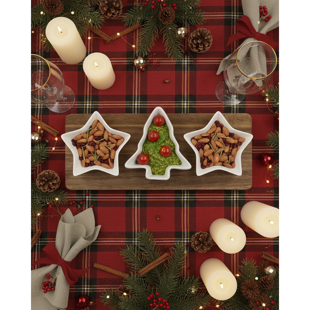 Präsentieren Sie Ihre Marke mit unserem exklusiven Weihnachts-Dip-Set in Premium-Qualität! Aus edlem Akazienholz gefertigt und mit drei eleganten, keramikbeschichteten Schalen in Form eines Sterns und eines Baums, bietet dieses Set nicht nur eine atemberaubende Optik, sondern auch einen praktischen Nutzen für jeden Anlass. Die Lasergravur Ihres Logos auf dem hochwertigen Brett sorgt für eine nachhaltige Markenpräsenz, die garantiert im Gedächtnis bleibt.